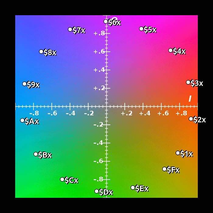 | 00:41, 17 November 2015 | ![]() | 700 × 700 (427 KB) | MSaarna (talk | contribs) | Atari 7800 color values shifting as the console warms up, overlaid on Y=0.5 IQ colorspace. |